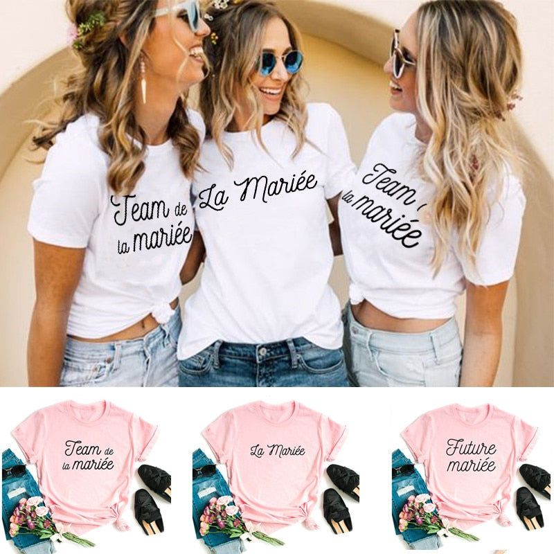 T-shirt à manches courtes imprimé, idéal pour la future mariée et son équipe